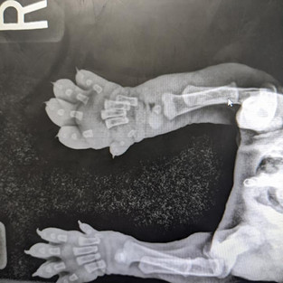 On a cold day at the end of January of last year, a client came in with a teeny tiny 3 week old great dane puppy wrapped up in a towel. Dr Cody was his doctor, and the client explained how he has been a ‘poor doer’ and hasn’t been thriving since he was born. He had found him with a wound a few days prior, and brought him in because he was seeming to do worse and worse as each day went on. Dr Cody unwrapped the towel to see the cutest little black and white pup, with a terrible wound on his right front foot that was wrapped with a small amount of human medical tape. The damage to his tiny paw was so severe, that the bones were visible. She swooped the little guy into our treatment area to flush and clean the wound, and grabbed me to ask my advice. We decided to send the owner with cleaning solution and to start the little one on antibiotics, gave him some fluids, and pain medications, and sent him home with his owner with strict instructions on managing the wound and to bring him right back if he was worsening.